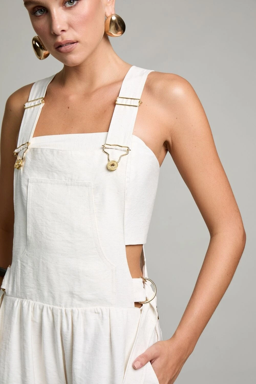 Uma jardineira em linho com detalhes em metal dourado e corte reto é uma peça sofisticada e atemporal, perfeita para compor looks elegantes e modernos.O linho traz leveza e frescor, garantindo conforto e um caimento impecável. Com corte reto confere uma silhueta alongada e estruturada, valorizando diferentes tipos de corpo. Fechos, botões ou fivelas em dourado adicionam um toque refinado e moderno à peça. Jardineira pode ser usada com uma blusa de gola alta para um look mais elegante ou com um cropped para um visual despojado e fashionista.
