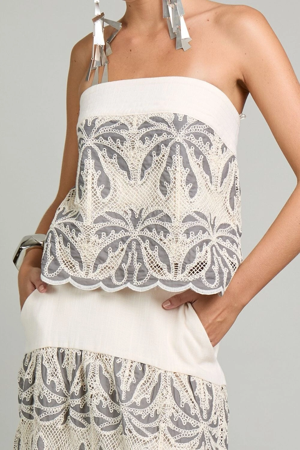 Composição: tecido I: 80% algodão; 20% poliéster; tecido II: 58% poliéster; 40% viscose; 0% linho;