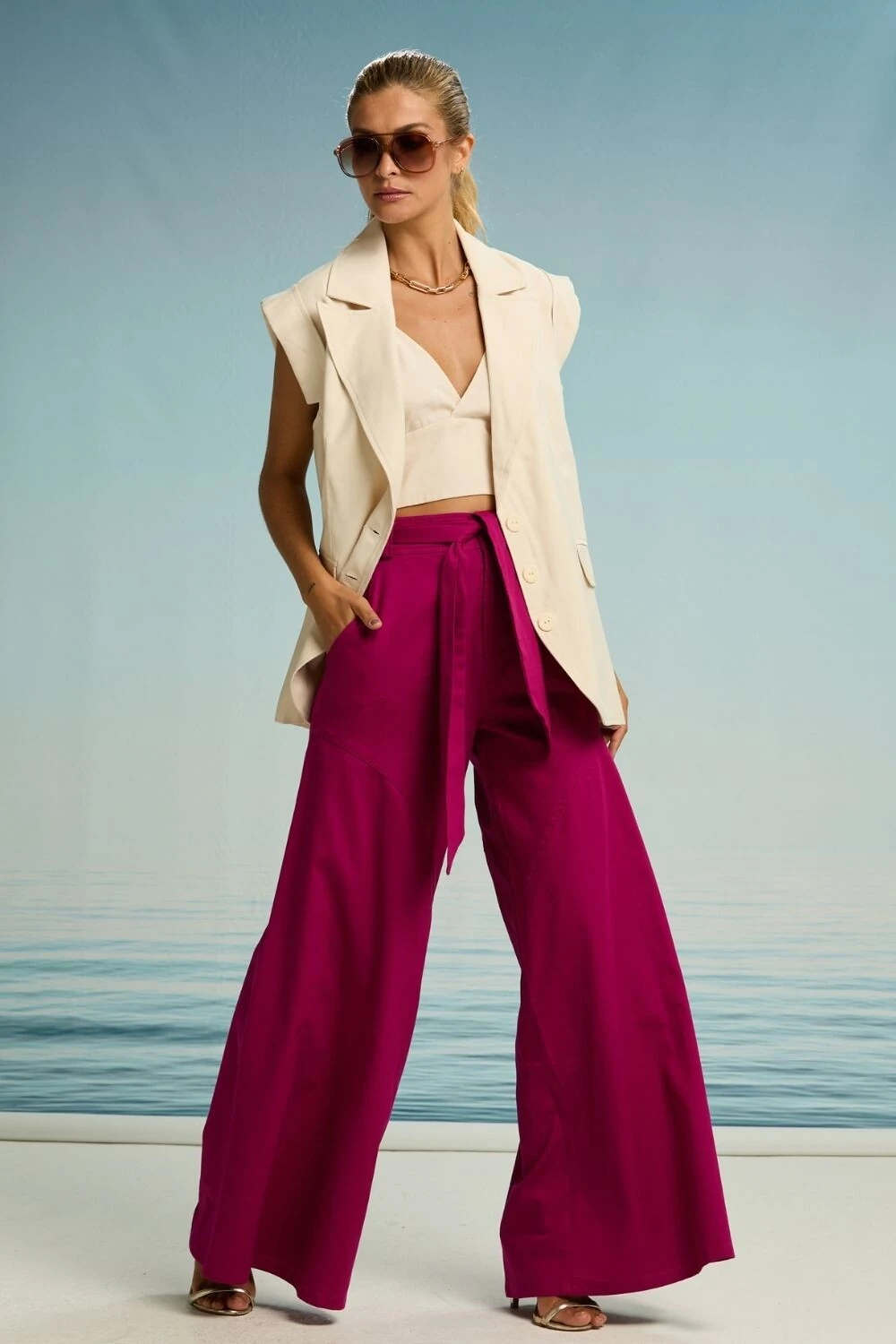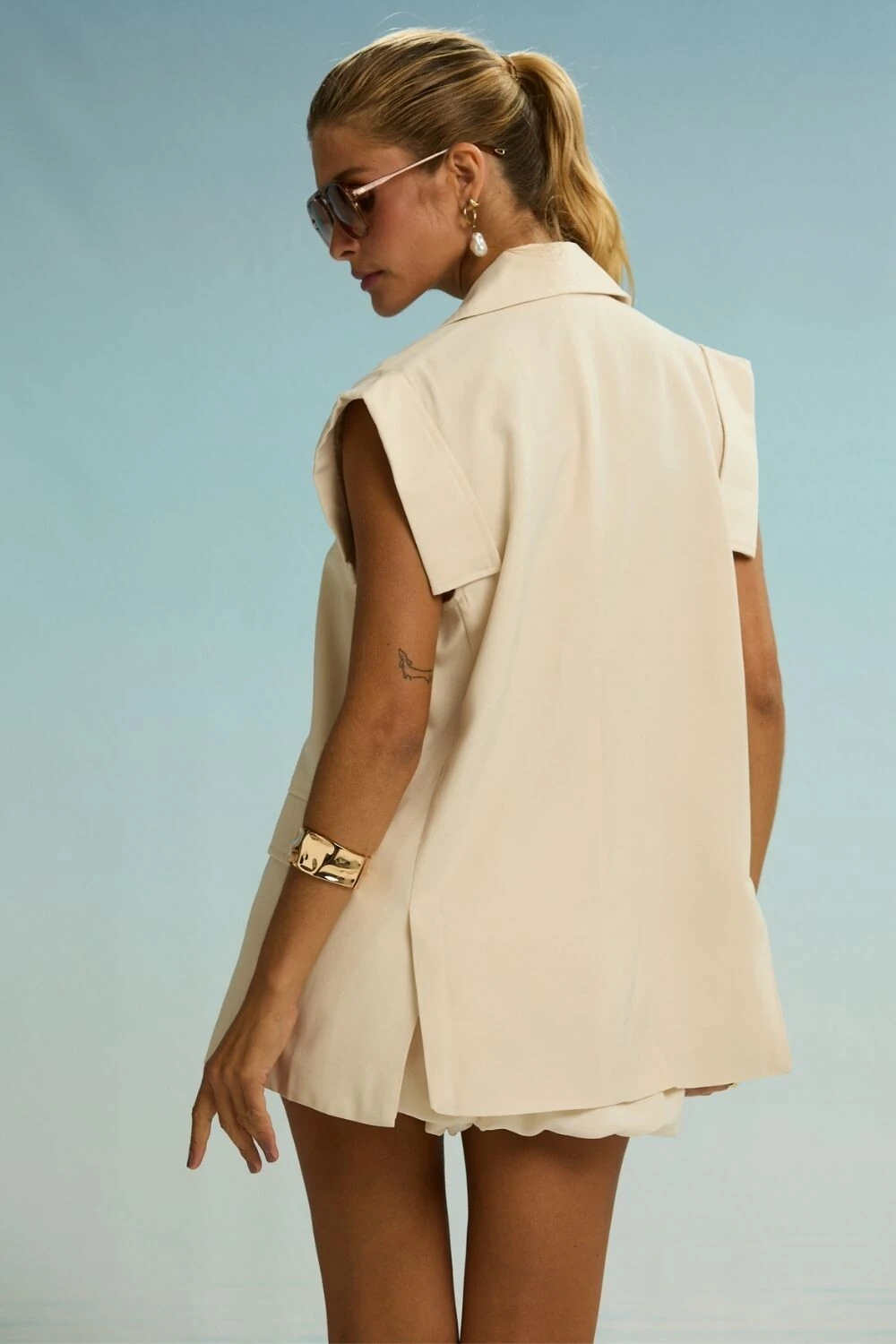 O Colete Elise traz o luxo contemporâneo em alfaiataria moderna. Em tom terroso, com corte estruturado e design sem mangas, combina sofisticação e versatilidade. Atemporal, é ideal para composições que vão do casual chic ao sofisticado.