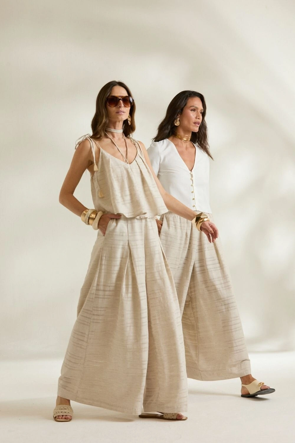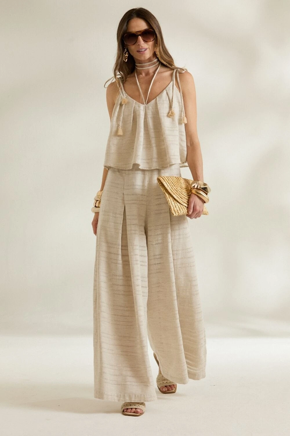 O Jump Pregas Tassel une elegância e conforto em tecido leve, com pregas frontais e alças com tassel. De modelagem ampla e fluida, é moderno, versátil e sofisticado.