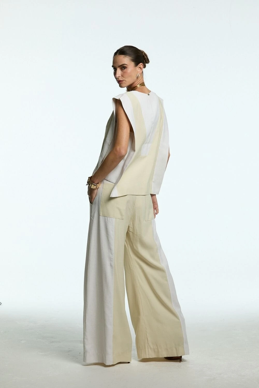 A Blusa Regata Bicolor Decote V combina elegância e modernidade em um design minimalista. Com recorte bicolor e modelagem reta, apresenta decote em V profundo que alonga a silhueta e valoriza o colo. Confeccionada em tecido leve e sofisticado, é perfeita para composições elegantes que transitam do dia à noite com facilidade.